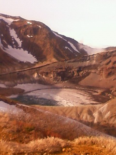 お釜はまだ雪がかなり残ってる。
