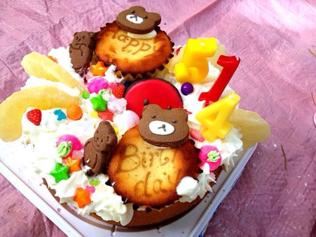 けこたんにスポンジ焼いてきてもらって、KASHAさんがいない間にお菓子と生クリームでみんなでデコレーション!!