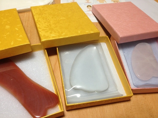 かっさ。 かっさプレートをいただきました( ´ ▽ ` ) 前々から、小顔になるとかムクミに効くとか色々と情報は聞いてたんだけど、イマイチ挑戦する気になれなかった… だけど、今回プレゼントしていただいたので、さっそく使ってみたいと思います! かっさはメノウと水晶、あとローズクォーツの3種類。 …気分で使い分けてもいいのかな? ちょっと、YouTubeあたりで使い方を研究してみようと思います! Tweet